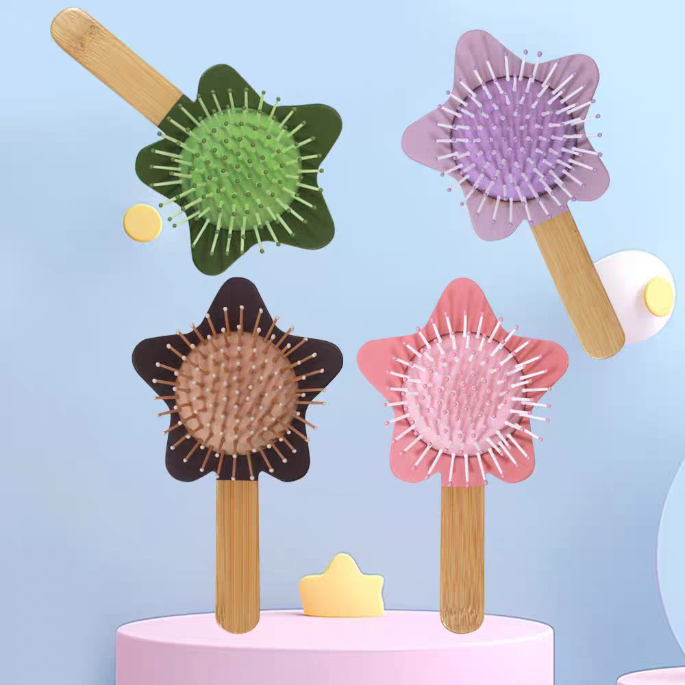 Natural Bamboo Cute Cat-Shaped Air Cushion Hair Brush for Body