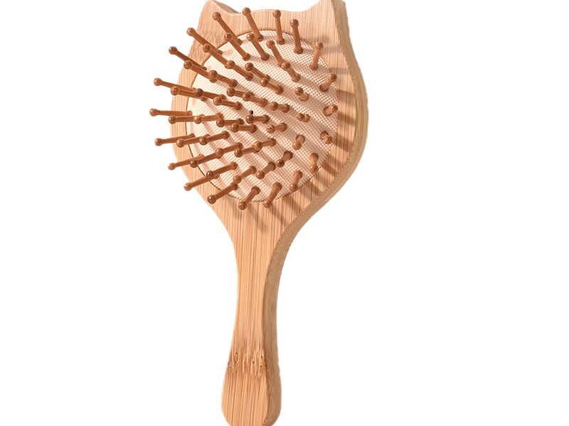 Natural Bamboo Cute Cat-Shaped Air Cushion Hair Brush for Body
