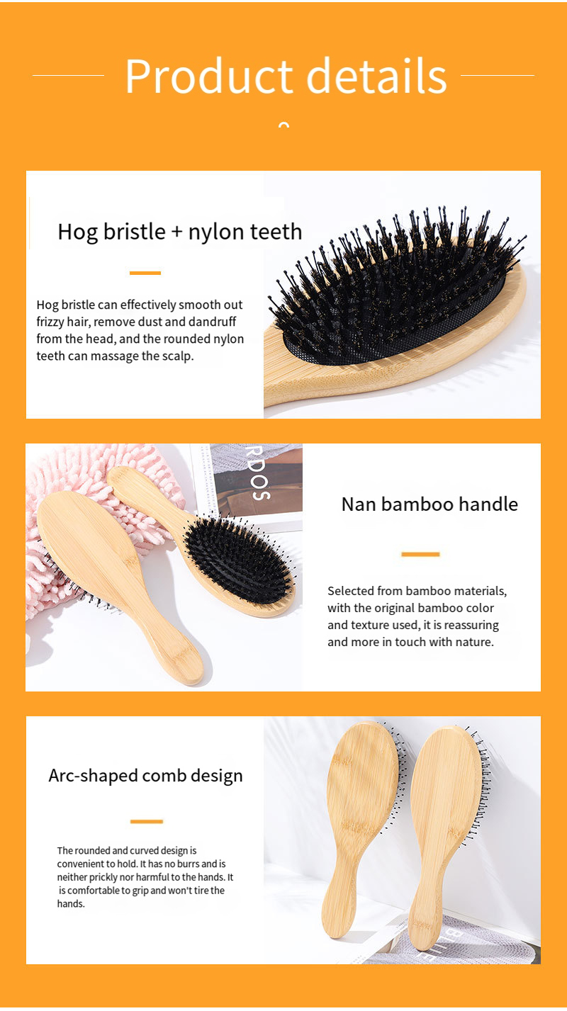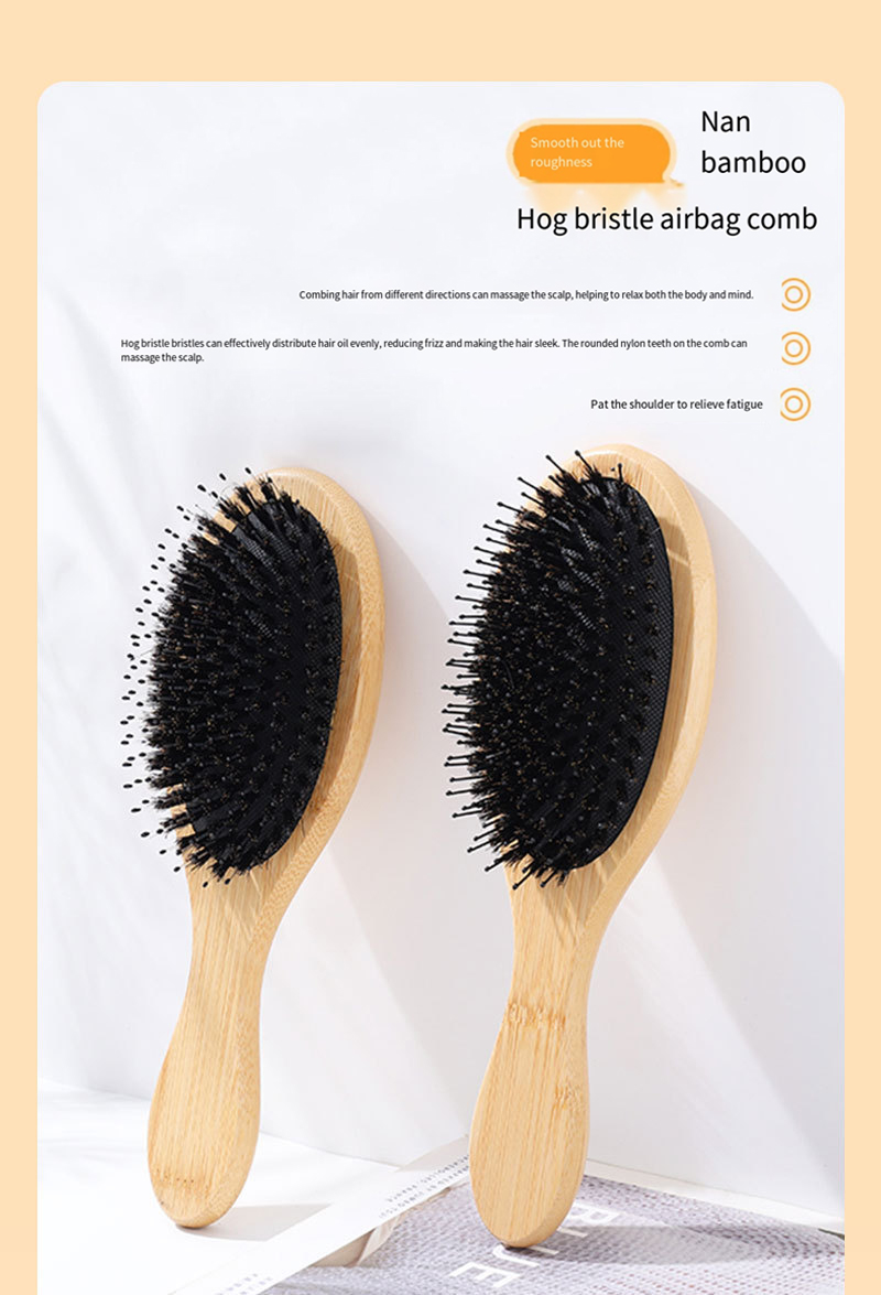This eco-friendly bamboo hair brush features natural bristles and an ergonomic handle. Ideal for gentle detangling, scalp massage, and daily hair care, it’s a sustainable choice for all hair types, perfect for eco-conscious consumers.