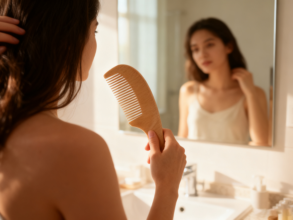 • Natural Wood Material: Eco-friendly, durable, and free of harsh chemicals (safer for scalp & hair than plastic combs).