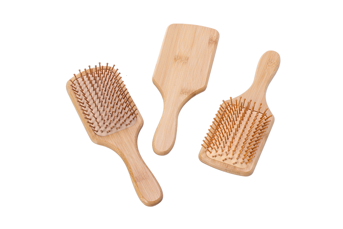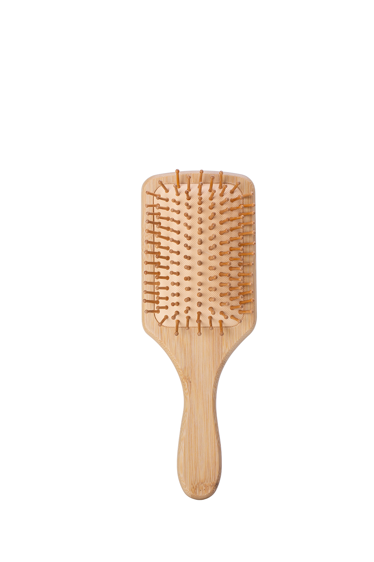 This eco-friendly bamboo paddle hair brush features natural bamboo handle and wooden bristles. It gently detangles hair, reduces static, massages scalp to boost circulation, suits all hair types. Durable, lightweight, moisture-resistant, ideal for daily use/travel. A sustainable choice for eco-conscious buyers. Custom packaging & wholesale available.