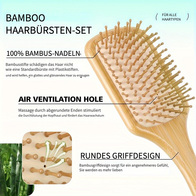Natural Bamboo Hair Brush with Wooden Pins – Anti-Static Hairbrush for All Hair Types