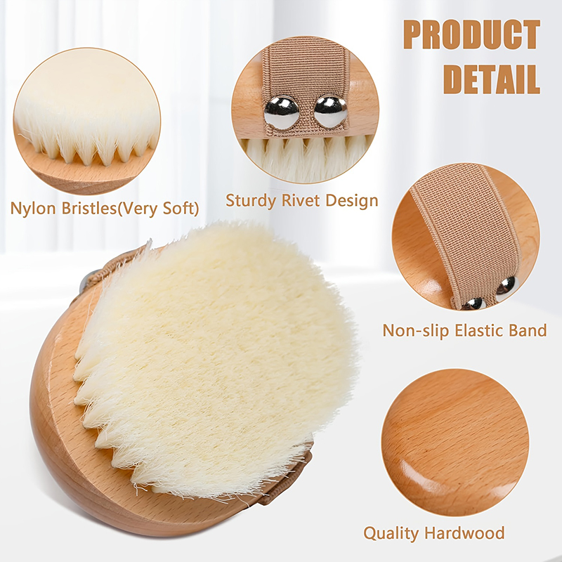 Natural Wooden Dry Body Brush with Soft Bristles – Exfoliating & Circulation Boosting Body Scrubber for Skin Care