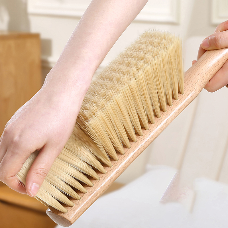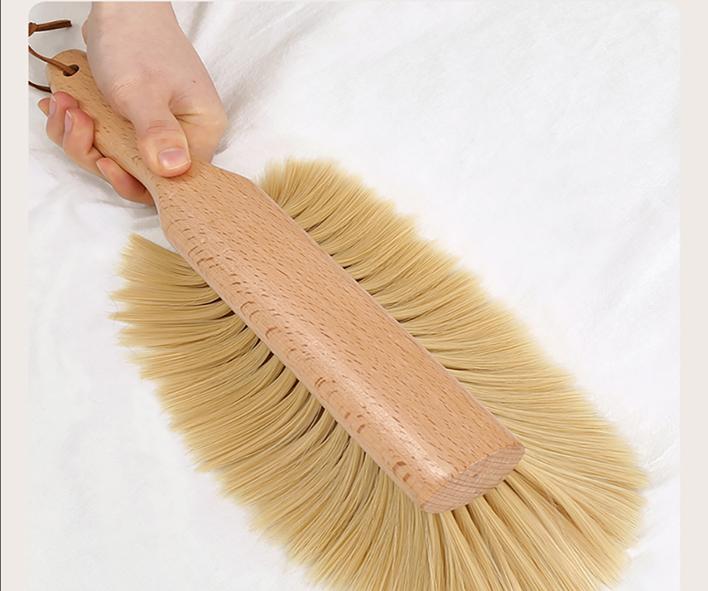 A: Our product is made of high-quality beech wood, which is more durable than plastic handles. The soft bristles have better dust absorption, and the anti-static design avoids secondary dust adsorption. It is also multi-functional, making it a better value for money household bed cleaning brush.